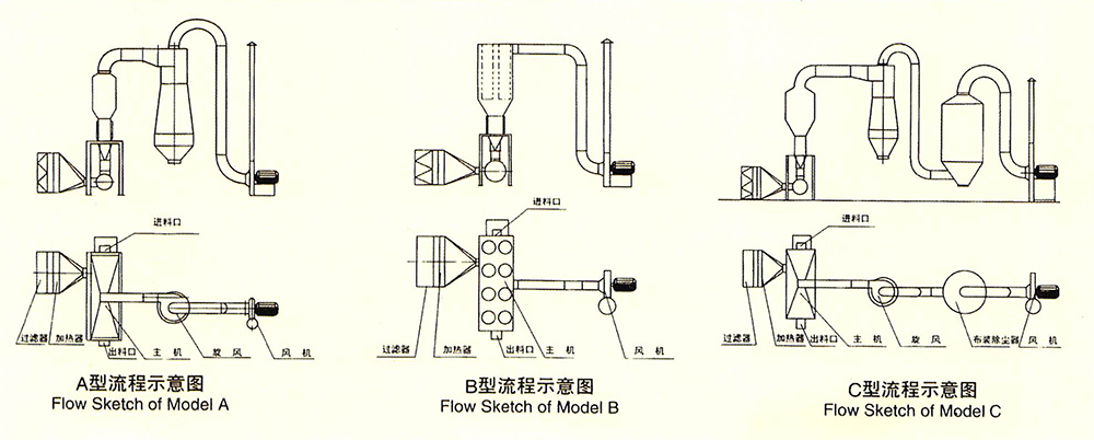 ※ 沸騰干燥器,又稱流化床,它是由空氣過濾器、沸騰床主機、旋風分離器、布袋除塵器、高壓離心通風機、操作臺組成。由于被干燥物料的性質不同,配套除塵設備時,可按需要進行,可同時選擇旋風分離器、布袋除塵器,也可選擇其中一種。一般來說,比重較大時的物料只需要選擇旋風分離器,比重較輕、較細的物料需配套布袋除塵器,并備有氣力送料裝置供選擇。
